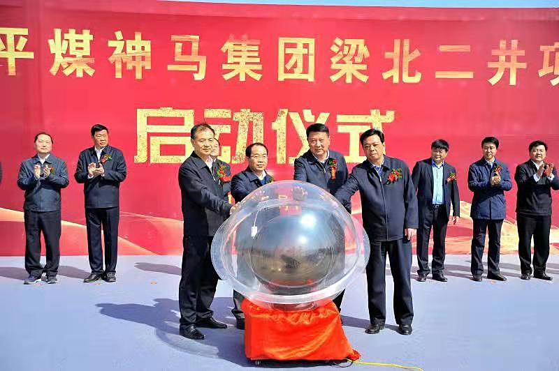 李毛、赵文峰、刘胜利、王宏武共同按下项目启动球,标志着集团梁北二井项目正式启动。