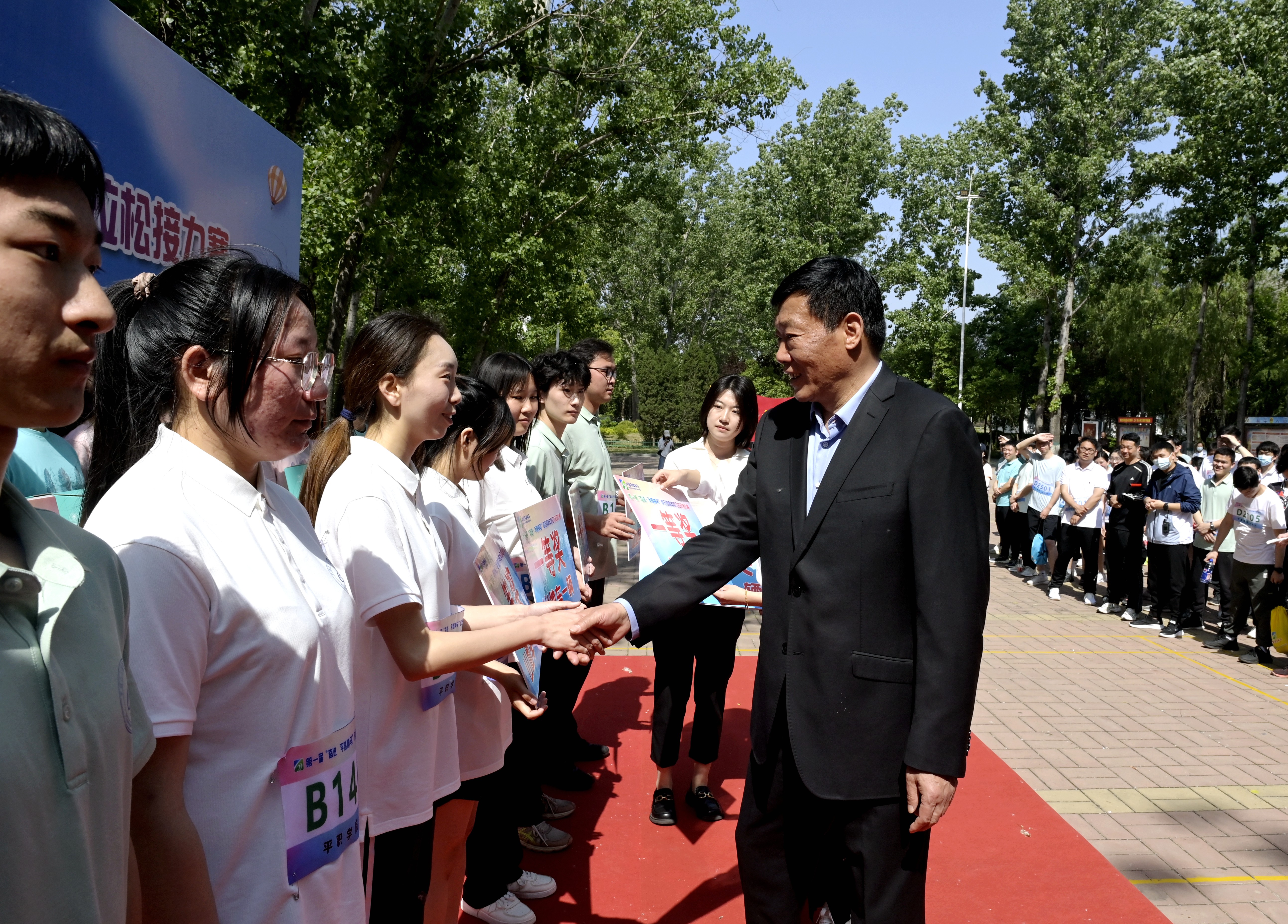赛前,张金常致辞。他说,值此五四青年节到来之际,我代表集团党委向广大团员青年致以节日的美好祝福!此次比赛是集团青年运动比赛的创新之举,考验的不仅是选手的速度与耐力,更是团队的协作与接力,希望青年选手们赛出风格、赛出水平、赛出友谊、赛出健康,将比赛中焕发出的活力和激情,转化为干好本职工作的实际行动,自觉接好争创世界一流企业的历史“接力棒”。当前,集团高质量发展实现了开局稳、开门红,同时也面临着市场行情波动、改革任务繁重等困难挑战,集团广大青年要勇做走在时代前列的奋进者、开拓者、奉献者,当好贯彻“六个坚定”、落实“六高一强”的排头兵、生力军、突击队,奋力书写建设高质量现代化中国平煤神马的青春答卷。