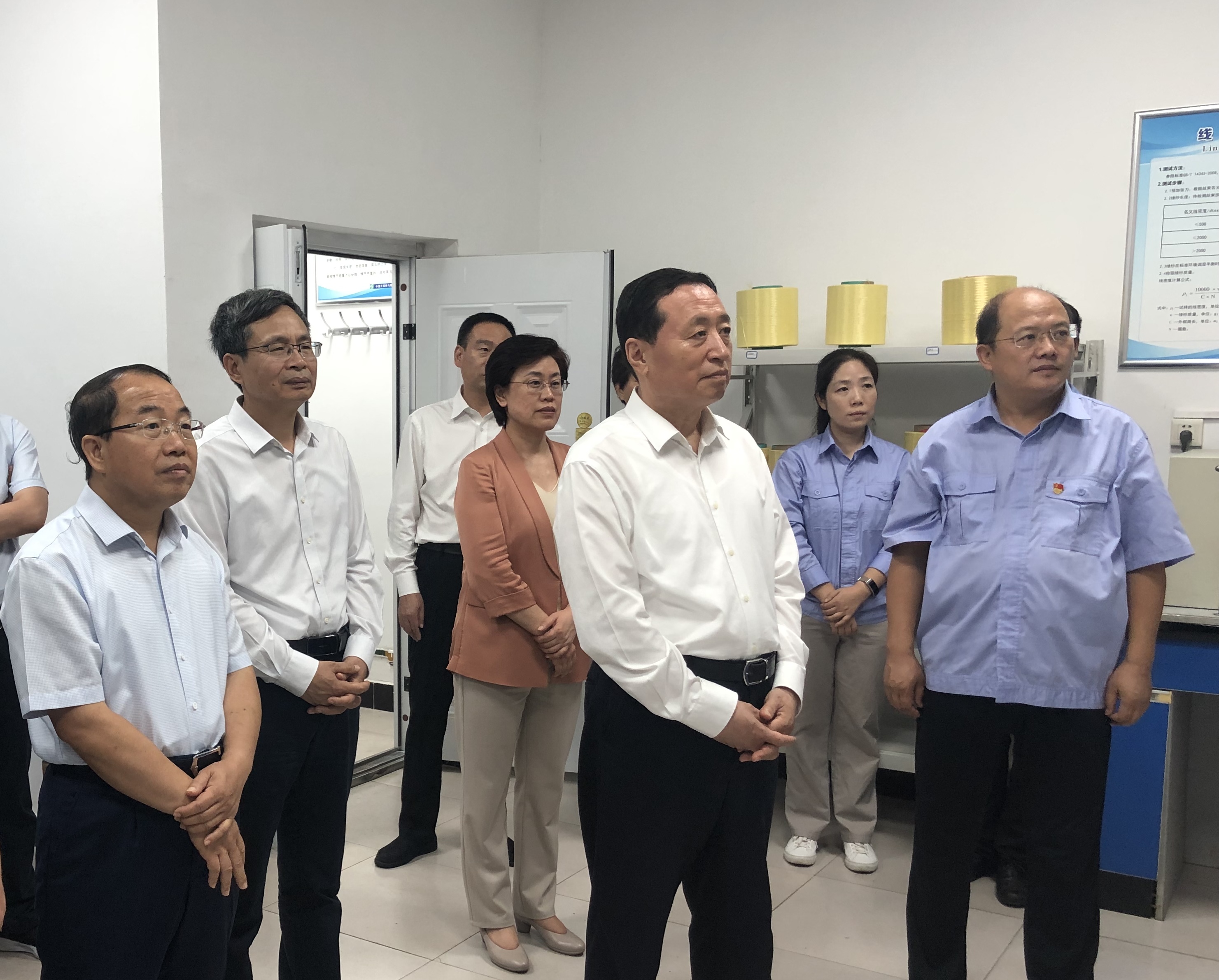 在芳纶技术开发公司生产车间和产品展示中心,孙守刚与企业负责人、研发团队深入交流,了解产品的研发、生产、应用情况,鼓励企业笃定信心、扎根深耕,依托集团各种资源优势,推动企业壮大规模、提升水平。