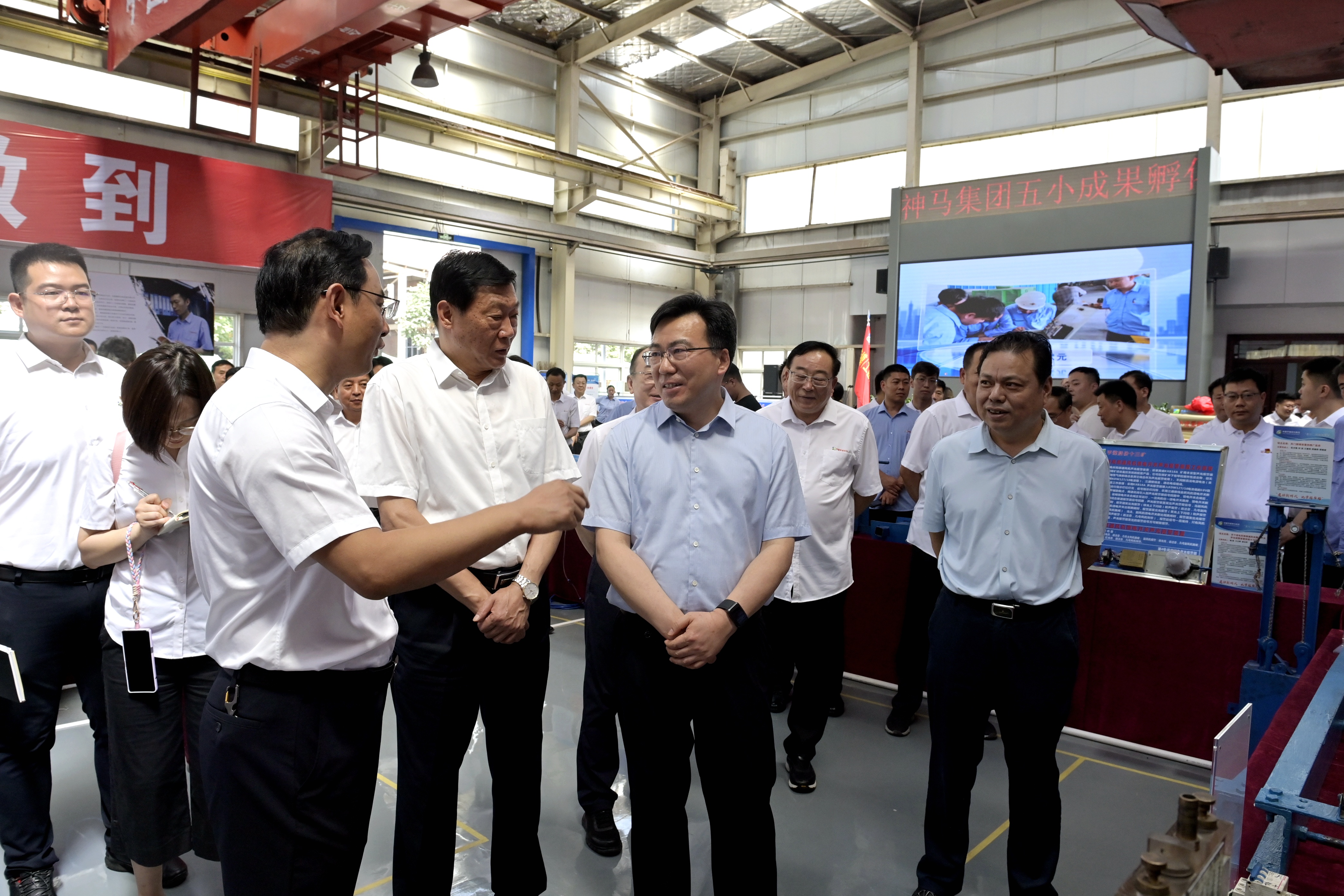 在“五小”创新成果展示区,李延河等领导先后参观了十一矿、帘子布公司、六矿、机电设备维修分公司、机械装备集团等单位展出的“五小”创新成果,与创新成果创造人亲切交流,详细询问创新成果研发背景、研发过程、取得的效果及应用推广情况等,对助力企业实现无人值守、减少岗位巡检人员、降低职工劳动强度、提高安全系数和工作效率的创新成果予以肯定。
