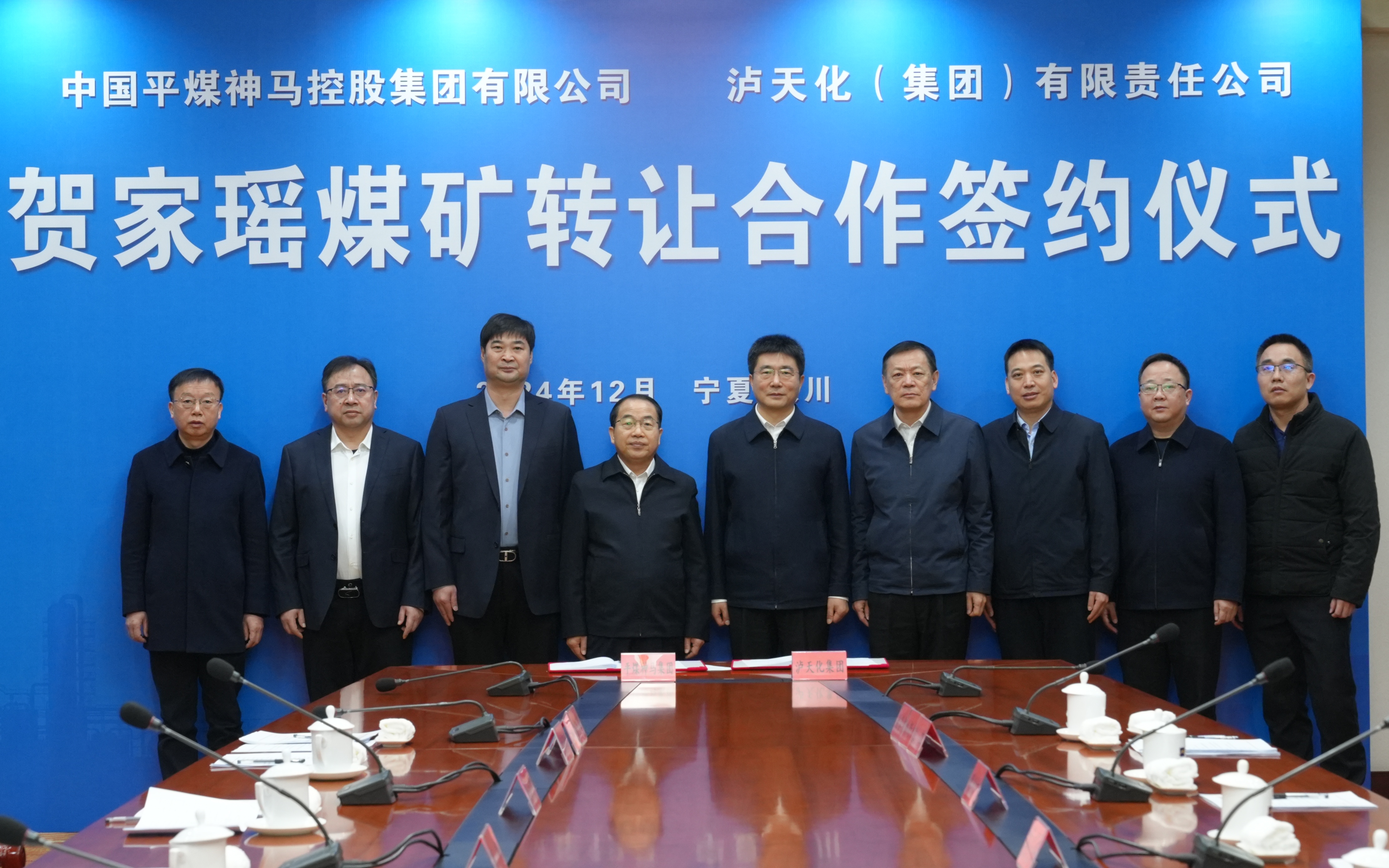 会议举行贺家瑶煤矿转让合作签约仪式,李庆明与泸天化股份公司代表分别代表双方签约,买彦州、张伟,李毛、李本斌,傅利才等鉴签。