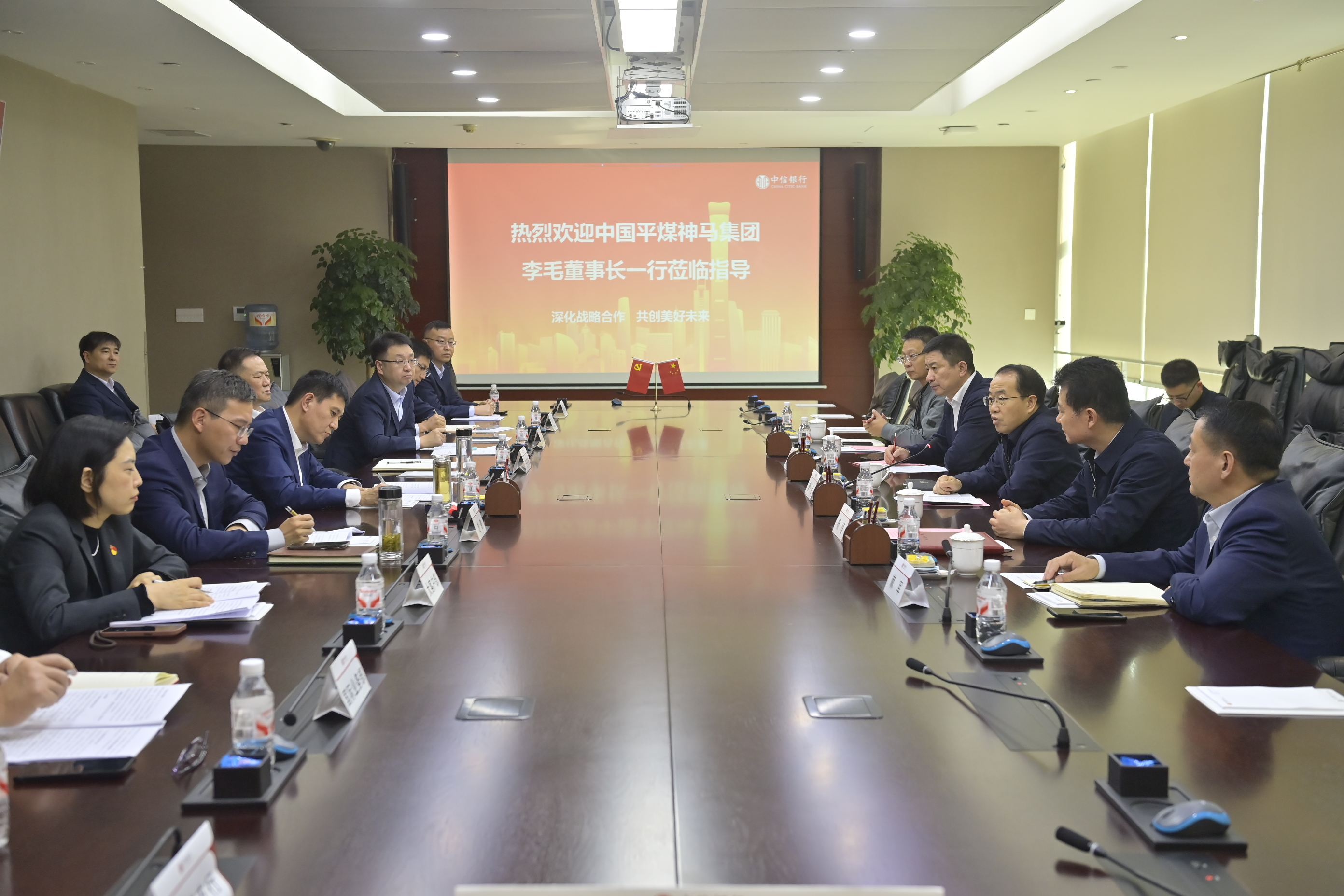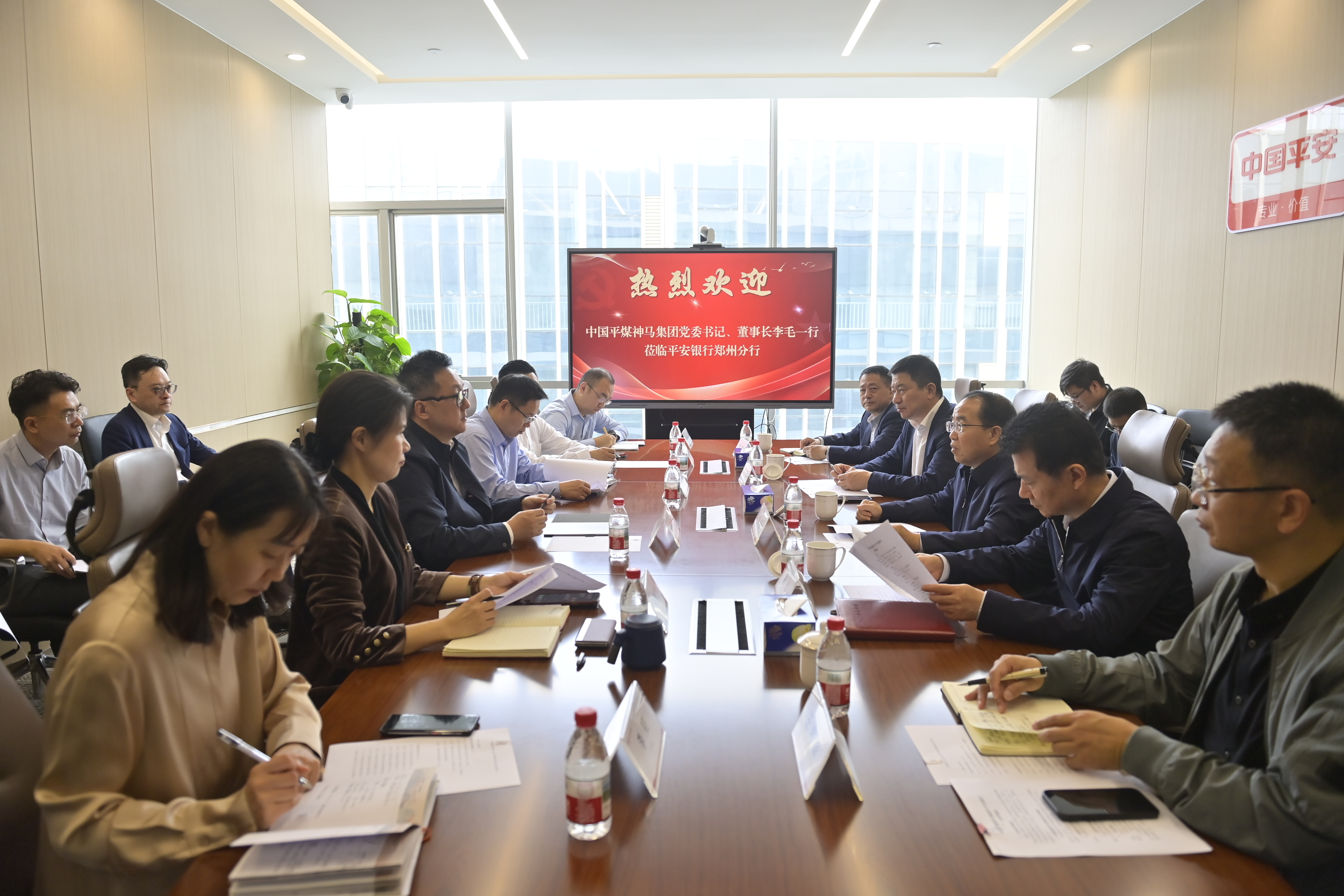 吴振程、宋涛、罗东伟、余西宁、郝惊涛、王炯对河南能源与平煤神马的战略重组表示祝贺,高度认可xk首页的产业实力,对集团未来发展充满信心与期待,均表示将充分发挥自身在政策支持、资金保障、服务创新等方面的优势,围绕集团战略重组及未来发展需求主动做好对接,优化金融服务方案,加大资源支持力度,持续提升服务能力水平,积极拓展合作领域,全力支持xk首页加快创建世界一流企业。